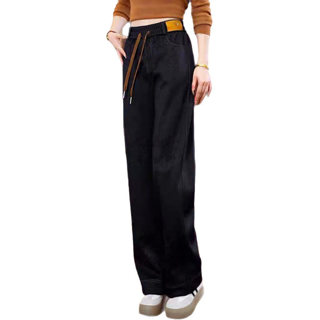 플리스 안감 슬림 하이웨이스트 스트레이트 레그 진