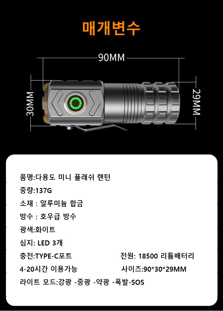 쓰리아이 몬스터 초광택 미니 플래쉬 랜턴