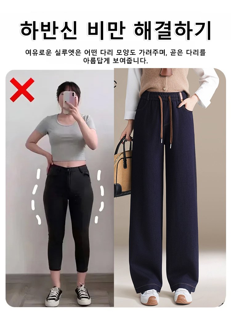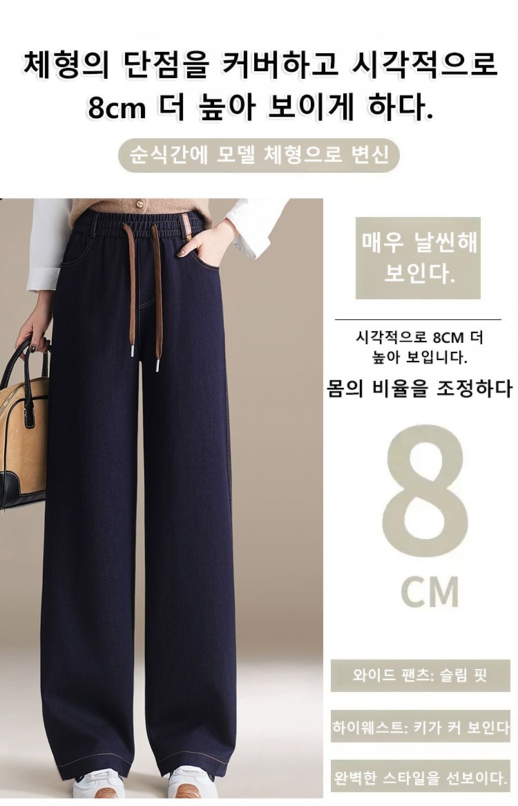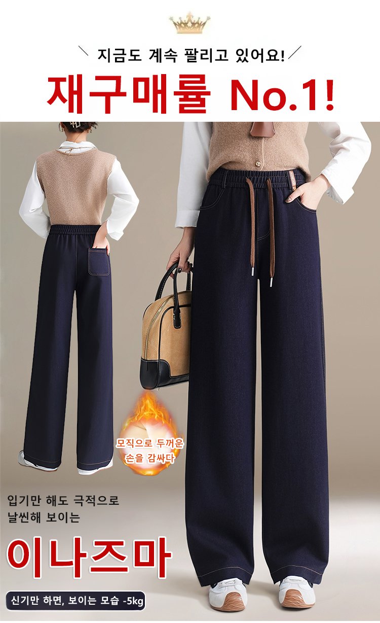 플리스 안감 슬림 하이웨이스트 스트레이트 레그 진